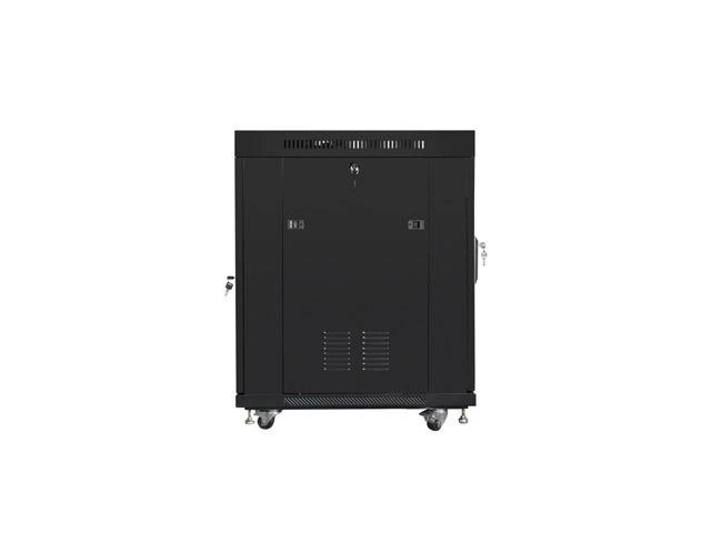Szafa umożliwia pełną regulację głębokości pionowych szyn montażowych. Wyposażona jest w przednie drzwi ze szkła hartowanego z zamkiem, z możliwością montażu prawo lub lewo stronnego. Posiada zdejmowane boczne panele (z zamkami w zestawie) i tylne solidne stalowe drzwi z zamkiem. Istnieje możliwość wprowadzenia okablowania poprzez zamykany górny i dolny panel (z zaślepkami w zestawie).