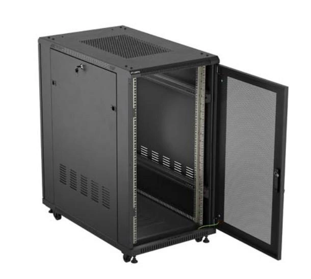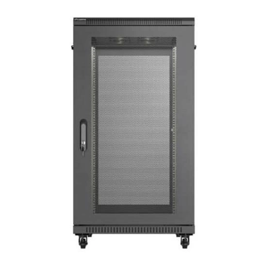 Szafa instalacyjna rack stojąca 19" 22U 600x1000 czarna drzwi perforowane ( flat pack)