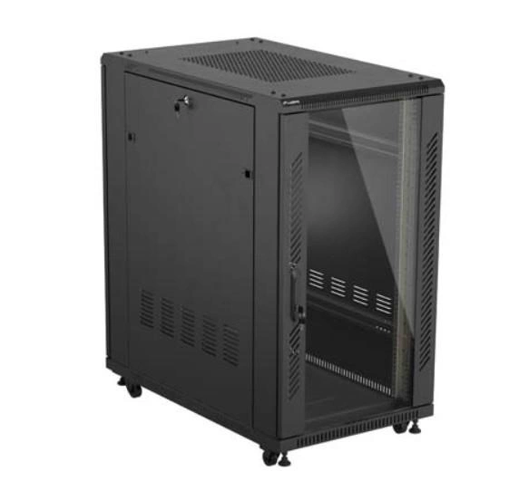 Szafa instalacyjna rack stojąca 19" 22U 600x1000 czarna drzwi przeszkolne ( flat pack)