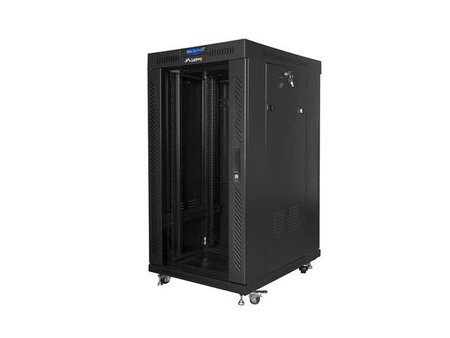 Szafa instalacyjna Rack stojąca 19" 22U 600x600 czarna drzwi szklane LCD Lanberg (flat pack)