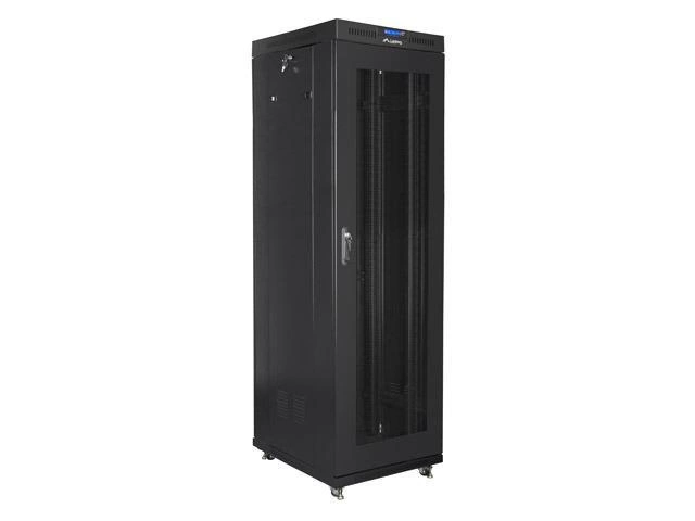 Szafa instalacyjna Rack stojąca 19" 42U 600x800 czarna drzwi perforowane LCD Lanberg (flat pack)