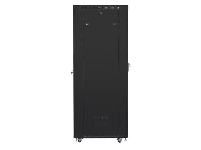 Konstrukcja wykonana jest przy użyciu wysokiej jakości stali walcowanej, charakteryzuje się znakomitym designem i jakością wykonania. Szafa umożliwia pełną regulację głębokości pionowych szyn montażowych. Wyposażona jest w przednie drzwi perforowane z zamkiem, z możliwością montażu prawo lub lewo stronnego. Posiada zdejmowane boczne panele (z zamkami w zestawie) i tylne perforowane drzwi z zamkiem. Istnieje możliwość wprowadzenia okablowania poprzez zamykany górny i dolny panel (z zaślepkami w zestawie).