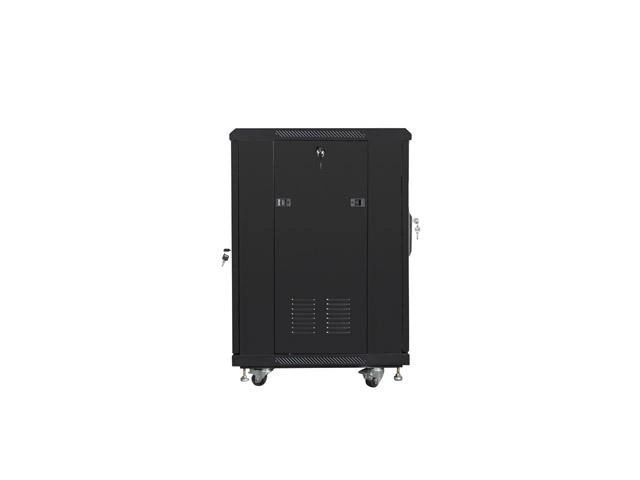 Szafa stojąca jednosekcyjna Lanberg FF01-6615-12B to rozwiązanie przeznaczone do budowy sieci, montażu okablowania oraz sprzętu w rozmiarze 19 o maksymalnym łącznym udźwigu do 800 kg. Może być stosowana w centrach danych, które wymagają dużej ilości miejsca w szafach na urządzenia. Szafa z powodzeniem spełni swoją rolę w dużych, rozbudowanych sieciach i serwerowniach, zarówno w małych, średnich jak i dużych firmach oraz korporacjach. Sprawdzi się również w instalacjach niskoprądowych takich jak sieci telewizji kablowych, systemy alarmowe, przeciwpożarowe, kontroli dostępu oraz systemy monitoringu CCTV i IP. Konstrukcja wykonana jest przy użyciu wysokiej jakości stali walcowanej, charakteryzuje się znakomitym designem i jakością wykonania. Szafa umożliwia pełną regulację głębokości pionowych szyn montażowych. Wyposażona jest w przednie drzwi ze szkła hartowanego z zamkiem, z możliwością montażu prawo lub lewo stronnego. Posiada zdejmowane boczne panele (z zamkami w zestawie) i tylne solidne stalowe drzwi z zamkiem. Istnieje możliwość wprowadzenia okablowania poprzez zamykany górny i dolny panel (z zaślepkami w zestawie). W zestawie znajduje się panel wentylacyjny z 2 wentylatorami 230V. Dodatkowo w komplecie załączone są akcesoria do mocowania szyn nośnych, śruby M6 oraz zaślepki paneli wejściowych, a dzięki konstrukcji do samodzielnego montażu (flat pack), całość znajduje się w 3 płaskich opakowaniach co ułatwia transport.