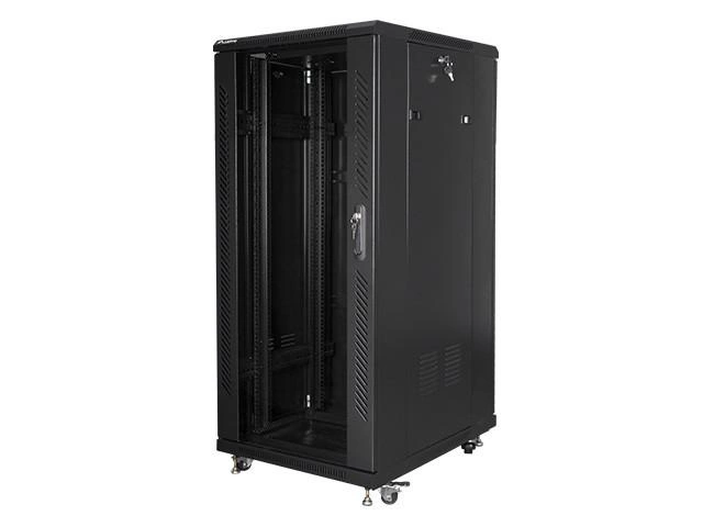 Szafa stojąca jednosekcyjna Lanberg FF01-6827-12B to rozwiązanie przeznaczone do budowy sieci, montażu okablowania oraz sprzętu w rozmiarze 19 o maksymalnym łącznym udźwigu do 800 kg.