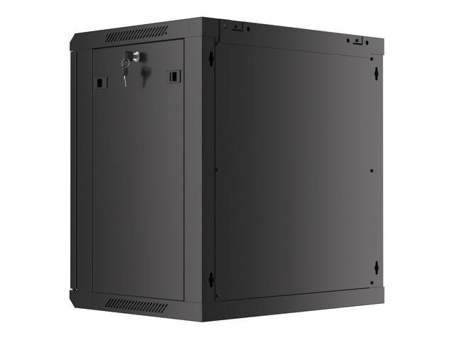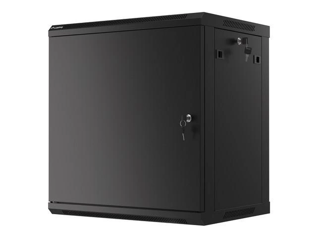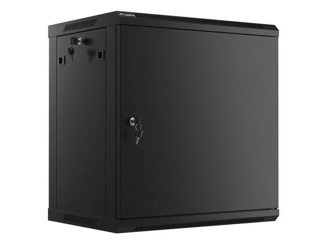 Szafa wisząca jednosekcyjna Lanberg WF01-6412-00B to rozwiązanie przeznaczone do budowy sieci, montażu okablowania oraz sprzętu w rozmiarze 19 o maksymalnym łącznym udźwigu do 60 kg. Może być stosowana w sieciach i serwerowniach zarówno w małych, jak i średnich firmach. Sprawdzi się również w instalacjach niskoprądowych takich jak sieci telewizji kablowych, systemy alarmowe, przeciwpożarowe, kontroli dostępu oraz systemy monitoringu CCTV i IP. Dzięki odpowiedniej konstrukcji, szafa umożliwia łatwy, samodzielny montaż. Charakteryzuje się szczelnością IP20, otwieranymi przednimi drzwiami z możliwością obrotu do 180°, wyposażonymi w zamek, zdejmowanymi bocznymi panelami (z zamkami w zestawie). Szafa posiada możliwość wprowadzenia okablowania poprzez górny i dolny panel. Całość wykonana jest z wysokiej jakości stali walcowanej, a dzięki konstrukcji do samodzielnego montażu (flat pack) znajduje się w płaskim opakowaniu co ułatwia transport. Dodatkowo w przesyłce załączone są dodatkowe akcesoria do mocowania szyn nośnych, śruby M6 oraz zaślepki paneli wejściowych.