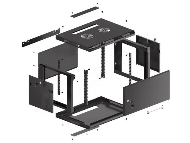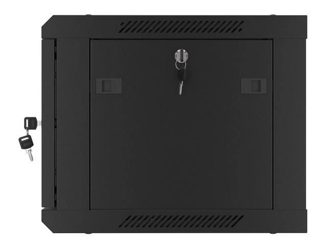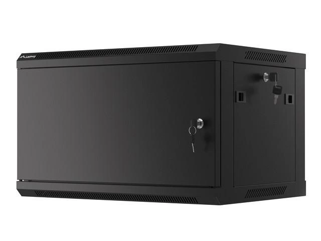 Szafa wisząca jednosekcyjna Lanberg WF01-6406-00B to rozwiązanie przeznaczone do budowy sieci, montażu okablowania oraz sprzętu w rozmiarze 19 o maksymalnym łącznym udźwigu do 60 kg. Może być stosowana w sieciach i serwerowniach zarówno w małych, jak i średnich firmach. Sprawdzi się również w instalacjach niskoprądowych takich jak sieci telewizji kablowych, systemy alarmowe, przeciwpożarowe, kontroli dostępu oraz systemy monitoringu CCTV i IP. Dzięki odpowiedniej konstrukcji, szafa umożliwia łatwy, samodzielny montaż. Charakteryzuje się szczelnością IP20, otwieranymi przednimi drzwiami z możliwością obrotu do 180°, wyposażonymi w zamek, zdejmowanymi bocznymi panelami (z zamkami w zestawie). Szafa posiada możliwość wprowadzenia okablowania poprzez górny i dolny panel. Całość wykonana jest z wysokiej jakości stali walcowanej, a dzięki konstrukcji do samodzielnego montażu (flat pack) znajduje się w płaskim opakowaniu co ułatwia transport. Dodatkowo w przesyłce załączone są dodatkowe akcesoria do mocowania szyn nośnych, śruby M6 oraz zaślepki paneli wejściowych.