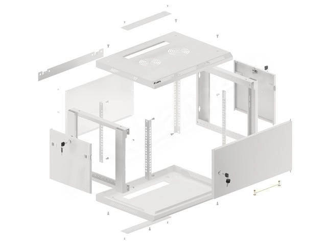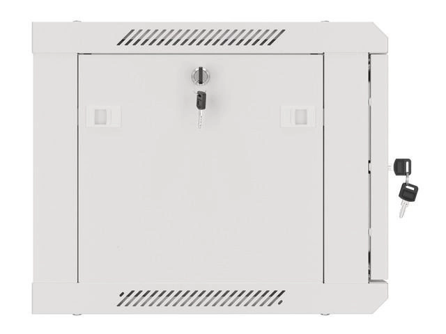 Szafa wisząca jednosekcyjna Lanberg WF01-6406-00S to rozwiązanie przeznaczone do budowy sieci, montażu okablowania oraz sprzętu w rozmiarze 19 o maksymalnym łącznym udźwigu do 60 kg. Może być stosowana w sieciach i serwerowniach zarówno w małych, jak i średnich firmach. Sprawdzi się również w instalacjach niskoprądowych takich jak sieci telewizji kablowych, systemy alarmowe, przeciwpożarowe, kontroli dostępu oraz systemy monitoringu CCTV i IP. Dzięki odpowiedniej konstrukcji, szafa umożliwia łatwy, samodzielny montaż. Charakteryzuje się szczelnością IP20, otwieranymi przednimi drzwiami z możliwością obrotu do 180°, wyposażonymi w zamek, zdejmowanymi bocznymi panelami (z zamkami w zestawie). Szafa posiada możliwość wprowadzenia okablowania poprzez górny i dolny panel. Całość wykonana jest z wysokiej jakości stali walcowanej, a dzięki konstrukcji do samodzielnego montażu (flat pack) znajduje się w płaskim opakowaniu co ułatwia transport. Dodatkowo w przesyłce załączone są dodatkowe akcesoria do mocowania szyn nośnych, śruby M6 oraz zaślepki paneli wejściowych.