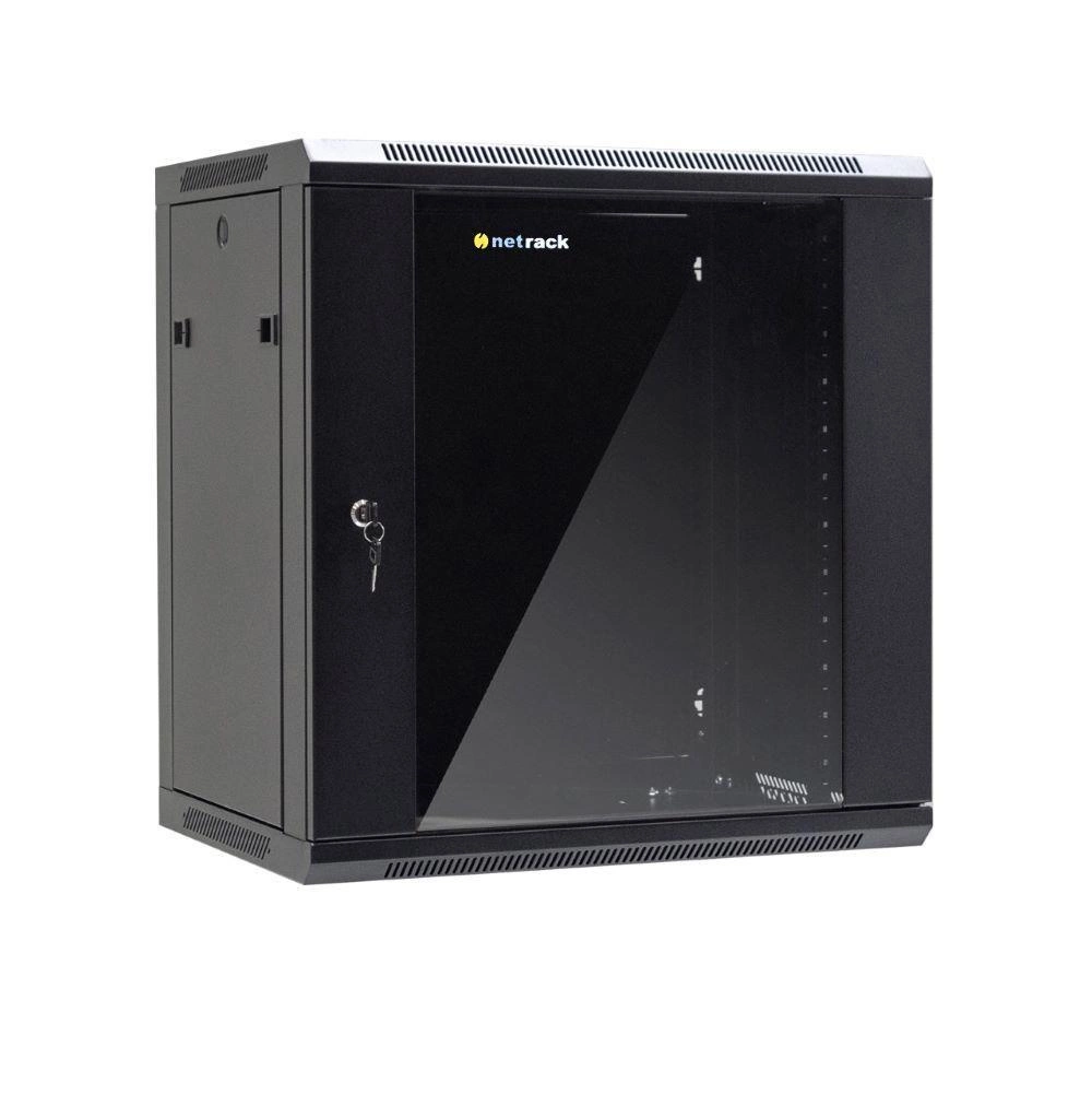 Szafa wisząca 19" Netrack, 12U/600x450mm - czarny, drzwi szklane, otwierane boki