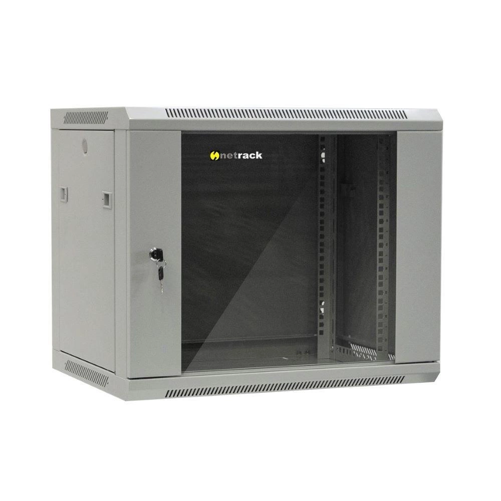 Szafa wisząca 19" Netrack, 9U/600x450mm – szary, drzwi szklane, otwierane boki