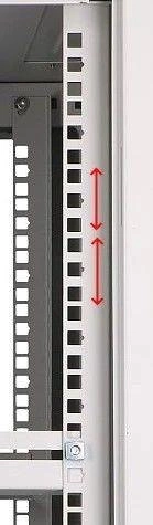 Szyny pionowe posiadają odpowiednie oznaczenie wysokości, która wynosi 12U (od ang. unit), natomiast całkowita wysokość szafy to 64 cm.