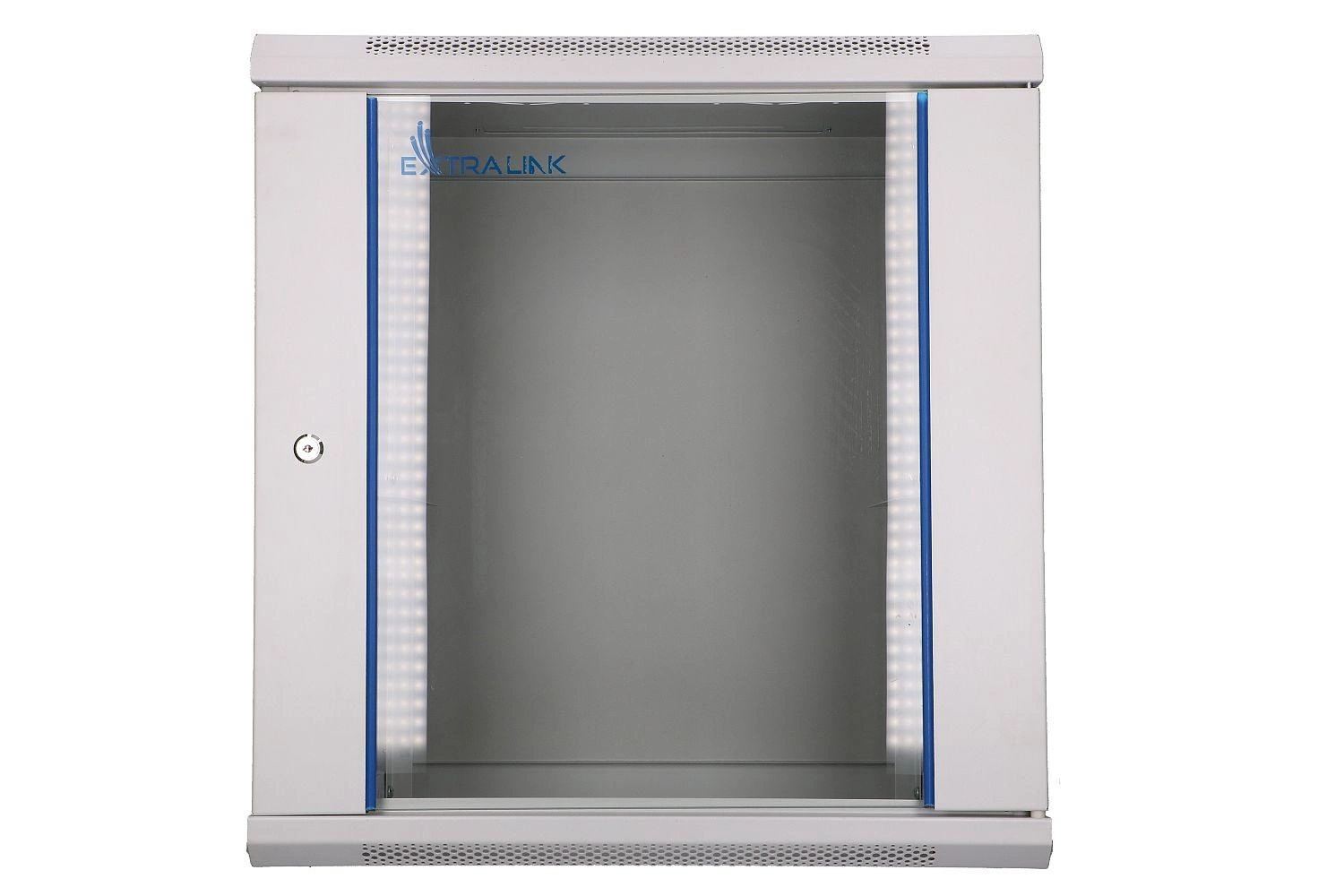 Szafa rackowa firmy Extralink jest przeznaczona do montażu naściennego w biurach, serwerowniach sieciowych oraz pomieszczeniach sterowania instalacjami CCTV. Ściany zewnętrzne wykonane są z walcowanej na zimno blachy stalowej. Wyposażone w szybę ze szkła hartowanego przednie drzwi mogą otwierać się na lewą lub prawą stronę.