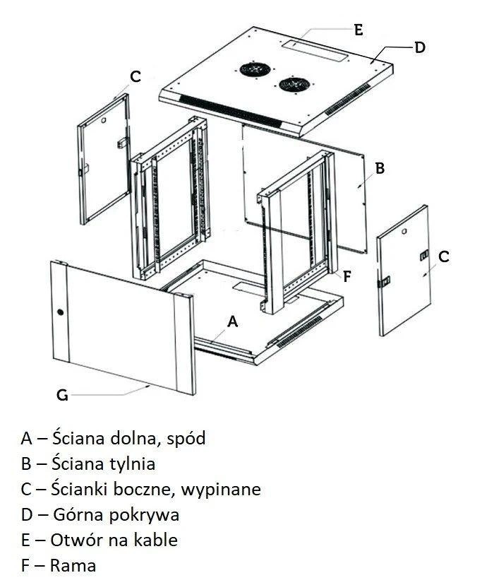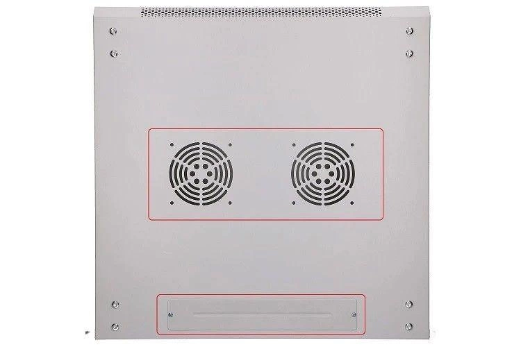 Na suficie szafy przygotowane są 2 miejsca na zainstalowanie wentylatorów w celu lepszego chłodzenia urządzeń, umieszczony jest tam również dodatkowy przepust do wyciągania kabli.