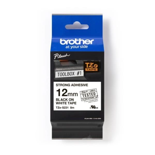 Taśma Brother TZe-S231 12mm x 8m (TZES231) - biała, czarny nadruk