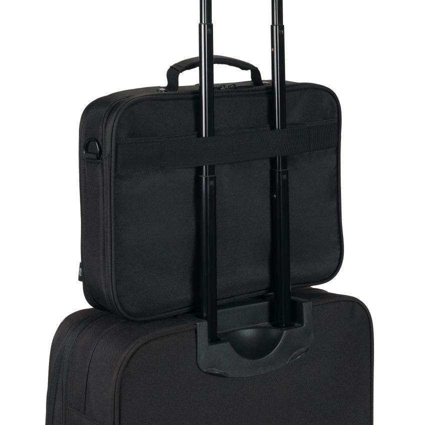 Torba ta łączy w sobie bezpieczeństwo i funkcjonalność z zamykaną, wyściełaną komorą na notebooka, która zapewnia optymalną ochronę dzięki wzmocnionej ramie. Przednia kieszeń została specjalnie zaprojektowana na akcesoria mobilne, a kieszeń zapinana na zamek oferuje miejsce na zasilacz i kabel. Ukryta komora na lokalizator GPS sprawia, że zawsze możesz mieć torbę na oku, a zapinana na zamek kieszeń z blokadą RFID chroni dane osobowe przed nieuprawnionym dostępem. Ważne dokumenty można bezpiecznie przechowywać w tylnej kieszeni na dokumenty, a wyściełany pasek na ramię zapewnia wygodę noszenia. Pasek do wózka ułatwia przymocowanie torby do walizki. Torbę dopełnia wodoodporny materiał, który niezawodnie chroni zawartość przed warunkami atmosferycznymi.