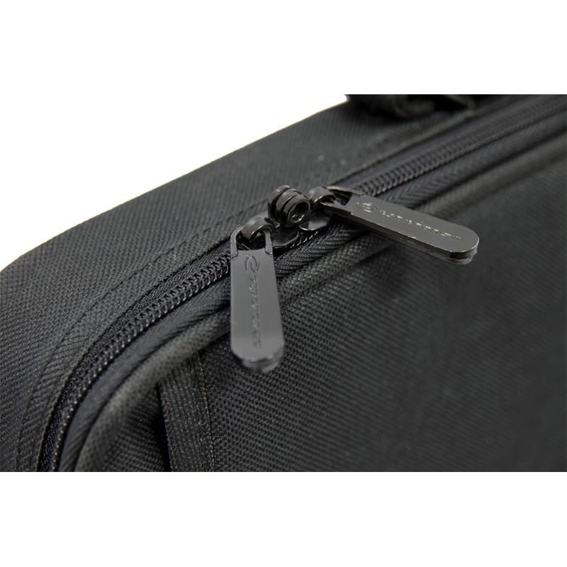 Elegancka torba na laptop o wielkości 17” lub mniejszy (regulowana wielkość komory laptopa za pomocą przesuwnej listwy z mocowaniem na rzepach umożliwia dopasowanie do wymiarów większości notebooków). Torba wykonana jest z wysokiej jakości materiału. Ścianki boczne są wzmocnione listwą metalową, a od wewnątrz wyłożone miękką warstwą pianki skutecznie chroniącej notebook przed uderzeniami i zarysowaniami. Z przodu posiada funkcjonalną kieszeń na dokumenty. Komora notebooka z każdej strony jest wyłożona miękkimi materiałami. Wewnątrz znajduje się kieszeń na podręczne dokumenty oraz pasek dodatkowo przytrzymujący notebook. Metalowe zawiasy uchwytu i paska naramiennego gwarantują dużą wytrzymałość i niezawodność. Regulowany pasek na ramię mocowany jest za pomocą bardzo łatwych w użyciu, metalowych karabinków, a w swojej środkowej części posiada gumową nakładkę zwiększającą komfort noszenia.