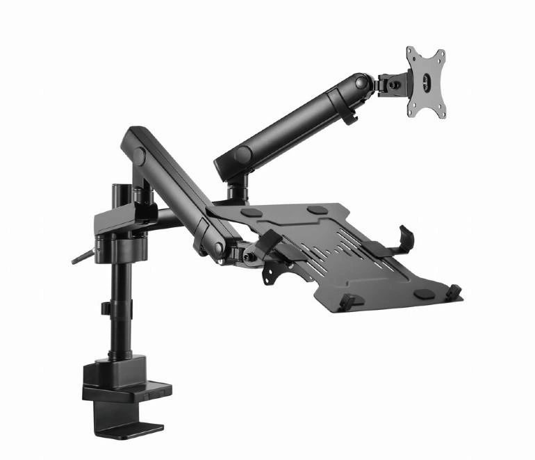 - Uchwyt do monitora montowany na biurku z półką na notebooka