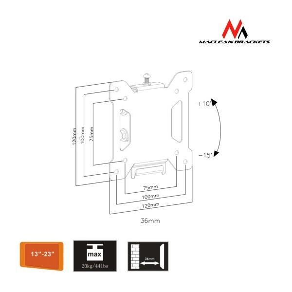 Uchwyt do telewizora lub monitora 13-27" MC-596 czarny 20kg max vesa 100x100 TV