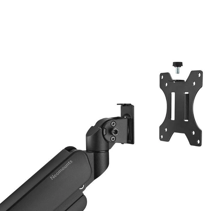 DS70PLUS-450BL1 jest odpowiedni dla ekranów z otworami VESA 75x75 lub 100x100 mm. W przypadku niestandardowych układów otworów firma Neomounts oferuje różne opcjonalne płyty adaptera VESA. Uchwyt biurkowy jest wyposażony w system szybkiego zwalniania VESA i jest wyposażony w zacisk topfix i przelotkę, które umożliwiają szybką i łatwą instalację.