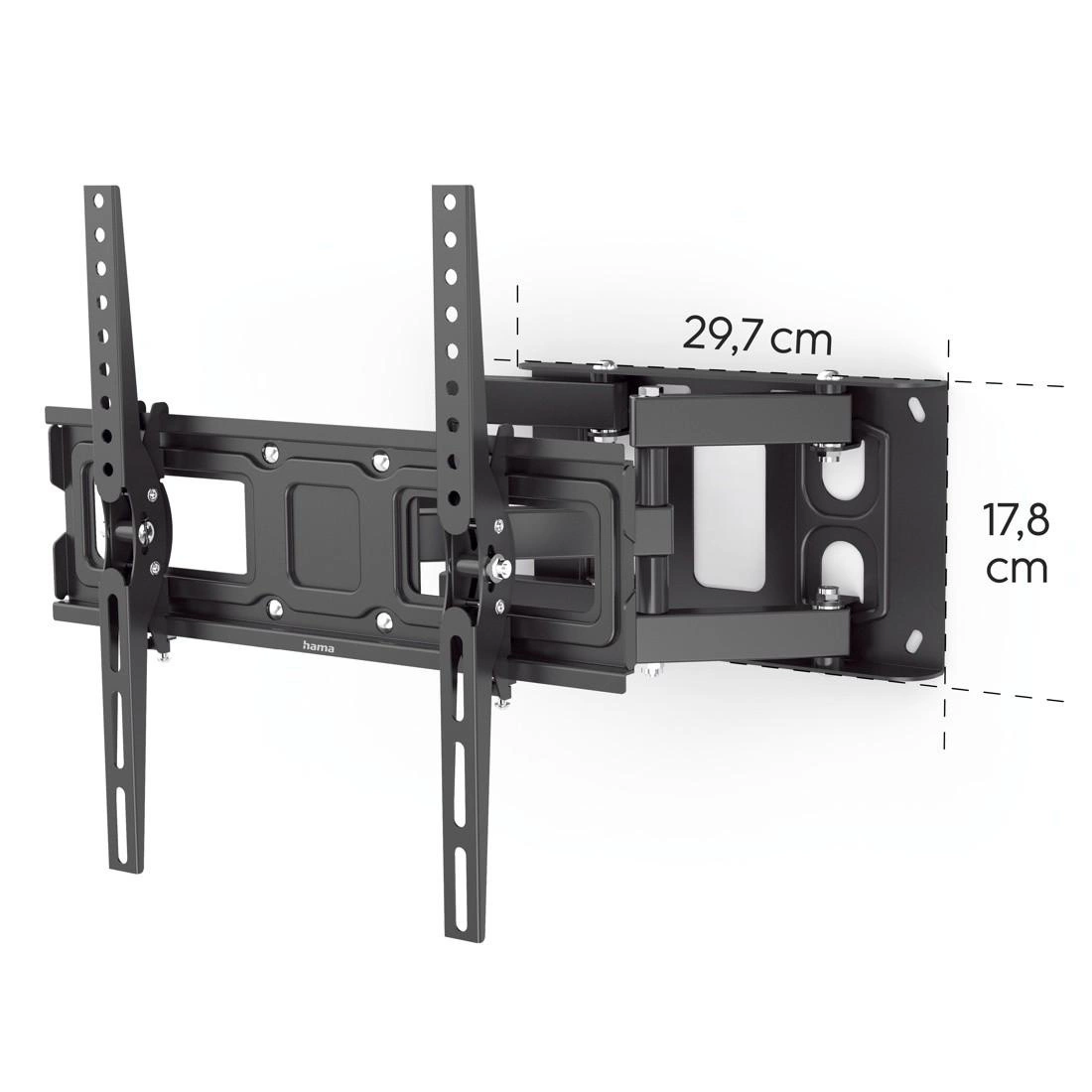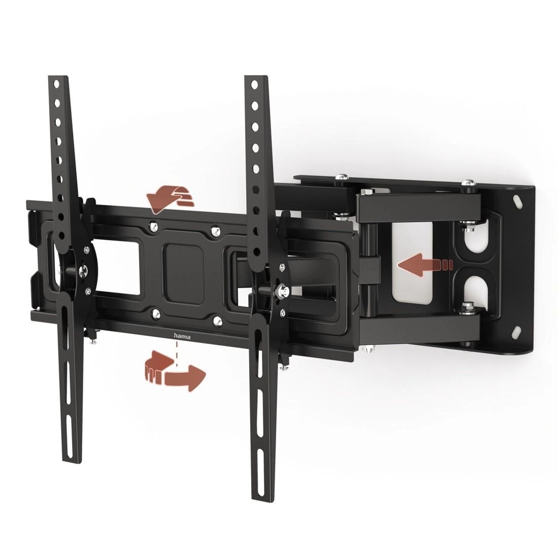 Po zamocowaniu telewizora uchwyt ścienny można w pełni dopasować do własnych potrzeb i zmieniać ustawienie w dowolnym momencie. Dzięki temu obraz zawsze będzie idealnie widoczny z każdego punktu pokoju. Hama Fullmotion pozwala na pochylenie telewizora, przesuwanie go na boki, przybliżanie i oddalanie od ściany.