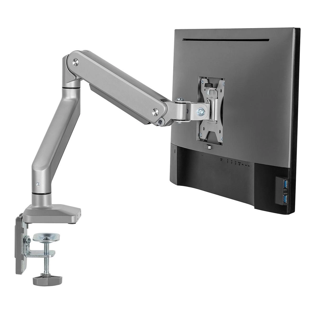 Uchwyt do monitora aluminiowy ze sprężyną gazową Ergo Office, podwójne ramię, vesa 75x75/100x100, 17"-32" 10 kg srebrny, ER-447