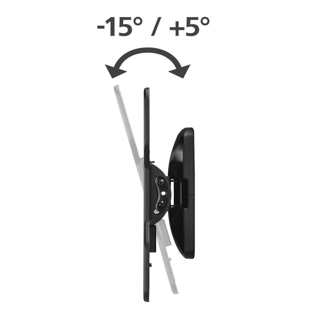 Czasem oglądasz film leżąc na kanapie, innym razem dzieciom jest wygodniej na podłodze. Za każdym razem obraz będzie dobrze widoczny, gdyż łatwo dostosować jego położenie. Specjalne złącze umożliwia bezstopniowe regulowanie kąta nachylenia ekranu w zakresie od +5° do -15°.