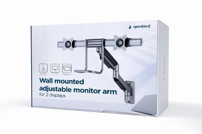 Regulowane ramię do montażu ściennego na 2 wyświetlacze, 17-32, do 8 kg