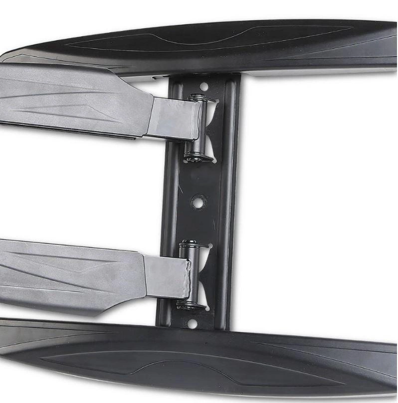 Wiele innych uchwytów, które można przechylić do przodu, a także obrócić/odchylić w lewo i prawo, jest dość dużych i nie można ich złożyć bardzo kompaktowo, co utrudnia ustawienie telewizora blisko ściany. Ten uchwyt nie ma tego problemu: można go złożyć do 54 mm od ściany .