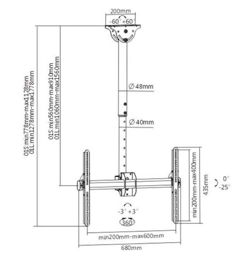- ICA CPLB-946S to teleskopowy uchwyt sufitowy o pełnym zakresie ruchu, zaprojektowany, aby zapewnić maksymalną wszechstronność i uniwersalną kompatybilność.