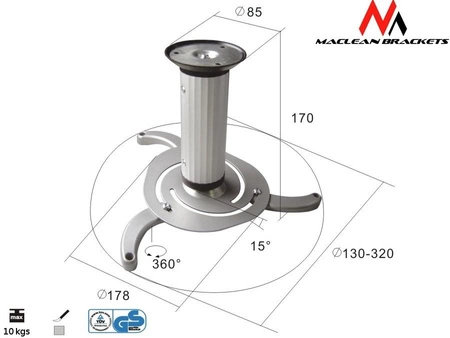 Uchwyt sufitowy do projektora Maclean MC-515 S 80-170mm 10kg