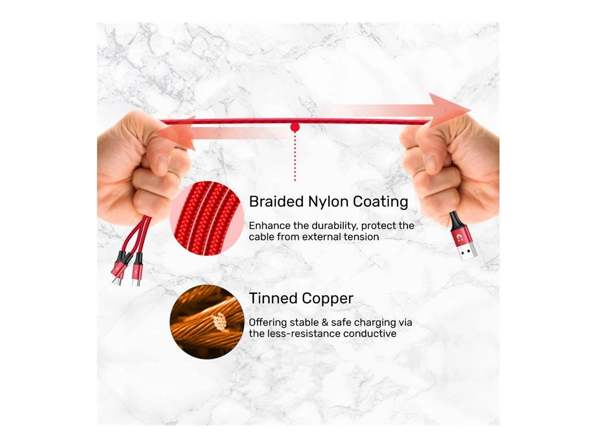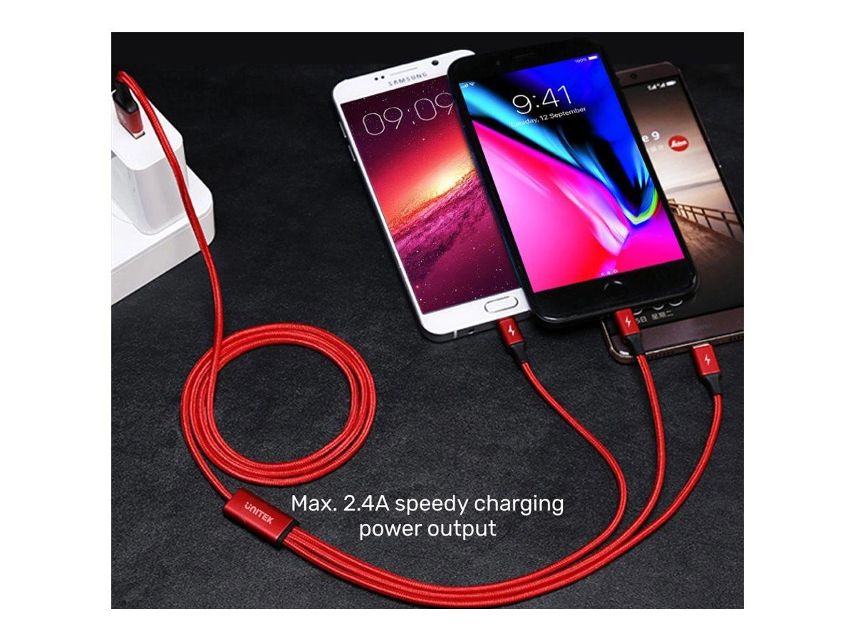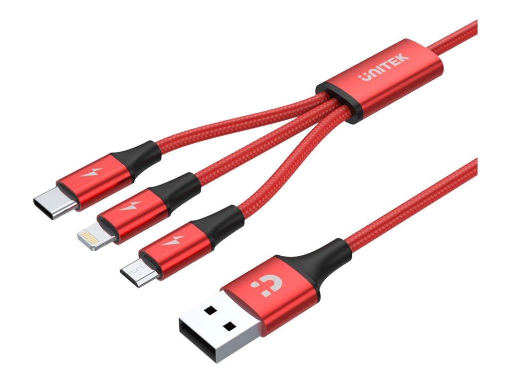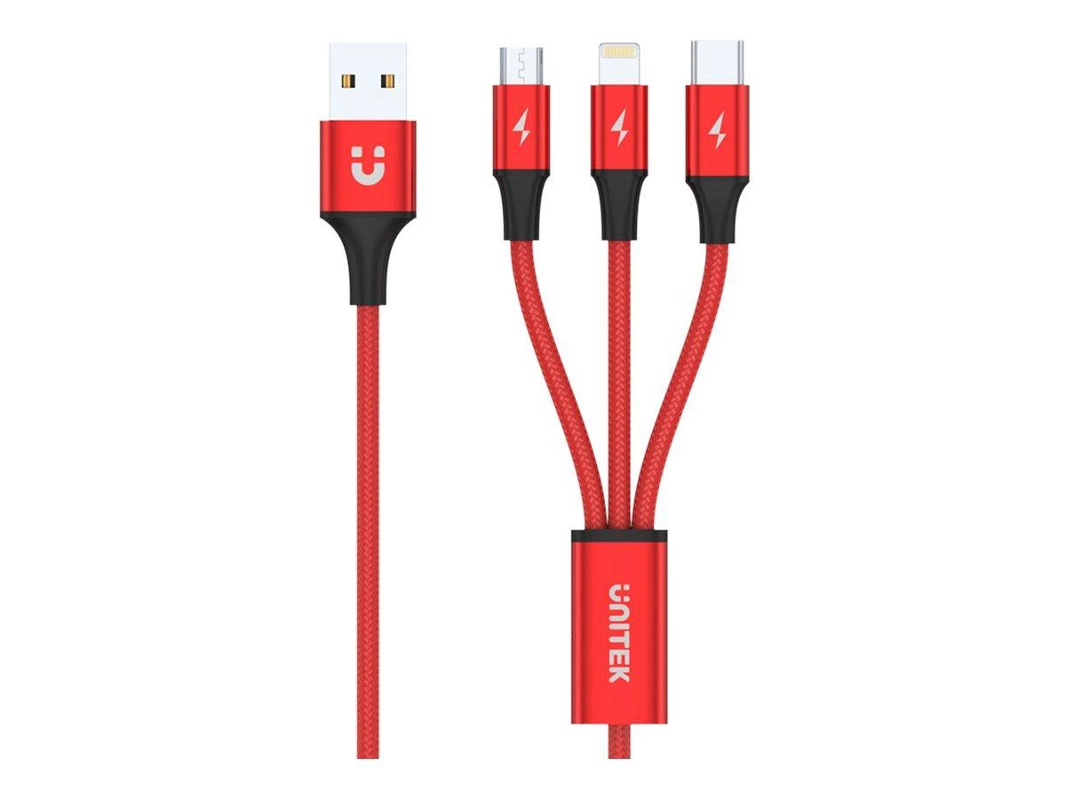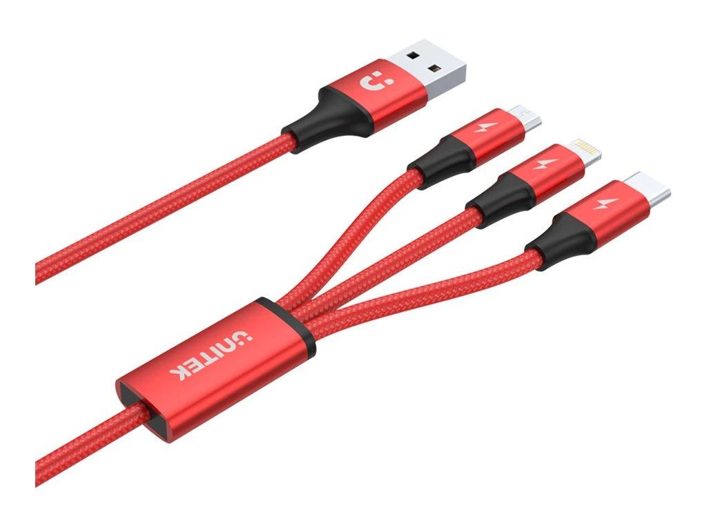 UNITEK C4049RD Kabel 3w1 USB-Typ-C/microUSB/Lightning 1.2m czerwony