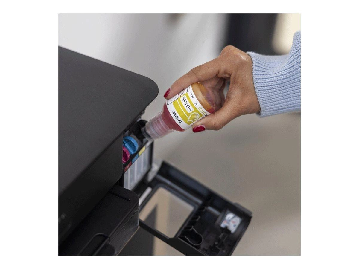 - W zestawie butelka z czarnym tuszem do 7,500 stron oraz butelki z tuszami kolorowymi do 5,000 stron każda