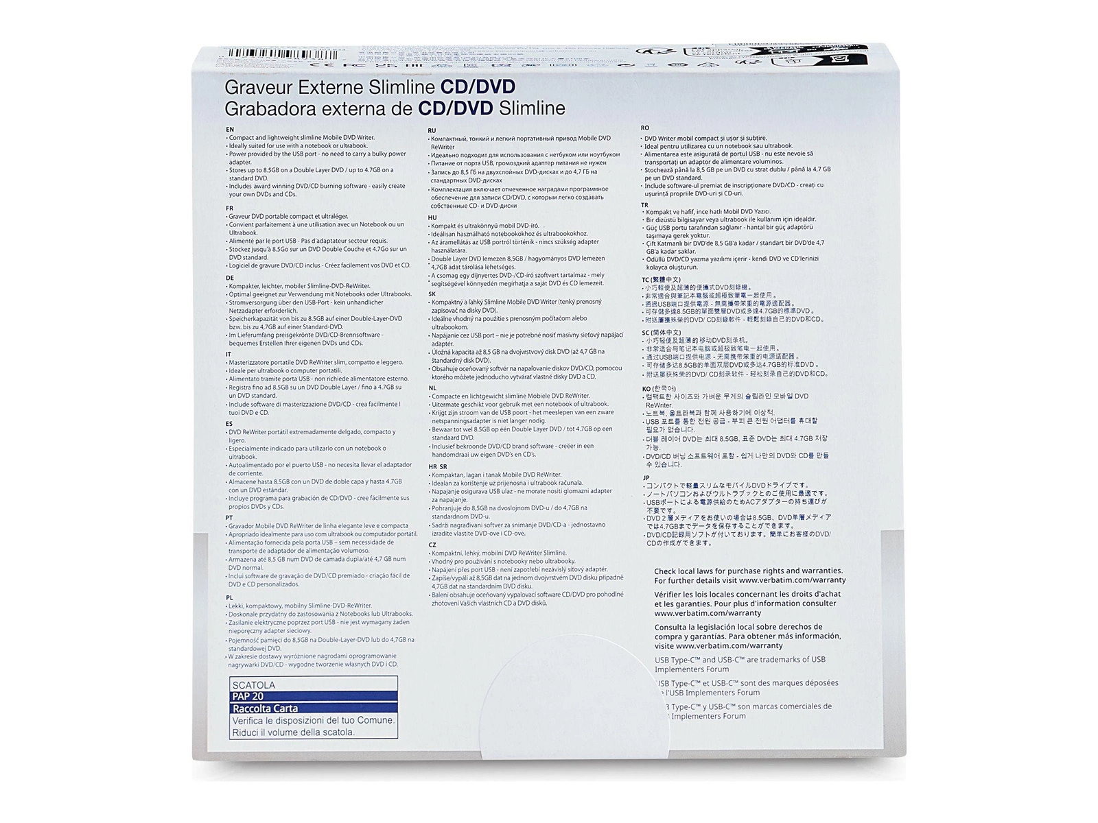 VERBATIM 98938 Verbatim nagrywarka zewnętrzna CD/DVD, USB 2.0, Slim, Czarna