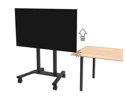 Wózek jest wyposażony w praktyczne uchwyty i cztery solidne, 10-centymetrowe kółka samonastawne z podwójną blokadą, które umożliwiają przemieszczanie i używanie stojaka podłogowego w dowolnym miejscu. Dzięki dużym kółkom samonastawnym progi lub dywaniki nie stanowią wyzwania dla FL55-875BL1. Otwarty rozstaw osi umożliwia łatwy dostęp do wyświetlacza (dotykowego) i ułatwia poruszanie się po obiektach. Dołączony kanał kablowy, opcjonalny do zainstalowania, ukrycia i poprowadzenia kabli od stojaka podłogowego do ekranu. Praktyczny uchwyt do zarządzania kablami z tyłu wózka zapewnia łatwe i bezpieczne przenoszenie. Dodatkowo w dolnej części wózka dostępne jest miejsce z otworami na opaski do montażu listwy zasilającej.