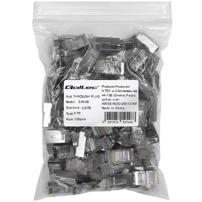 Wtyk przelotowy złącze RJ45 | CAT6 | FTP | Pass Through | Pozłacane styki | 100 sztuk