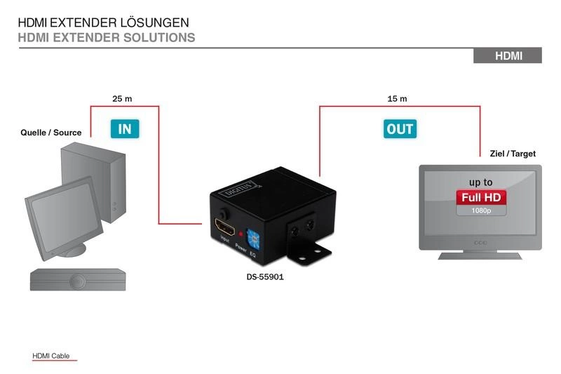 Wbudowany Equalizer pozwala na dokładne dopasowanie jakości transmisji W zależności od długości użytego kabla HDMI.