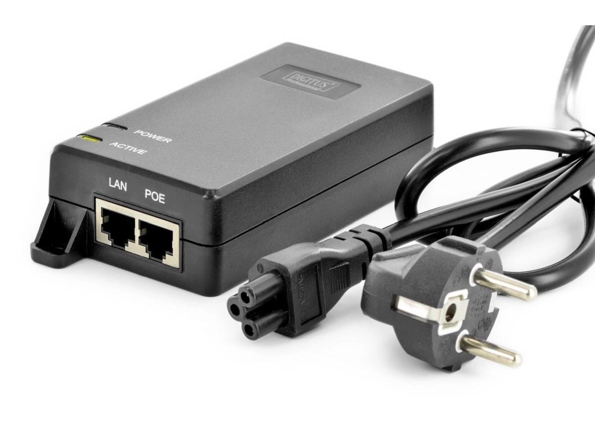 Zasilacz służy do podawania napięcia poprzez kabel skrętka bezpośrednio do urządzeń obsługujących standard PoE+ np. kamer IP, punkty dostępowe, telefony IP.