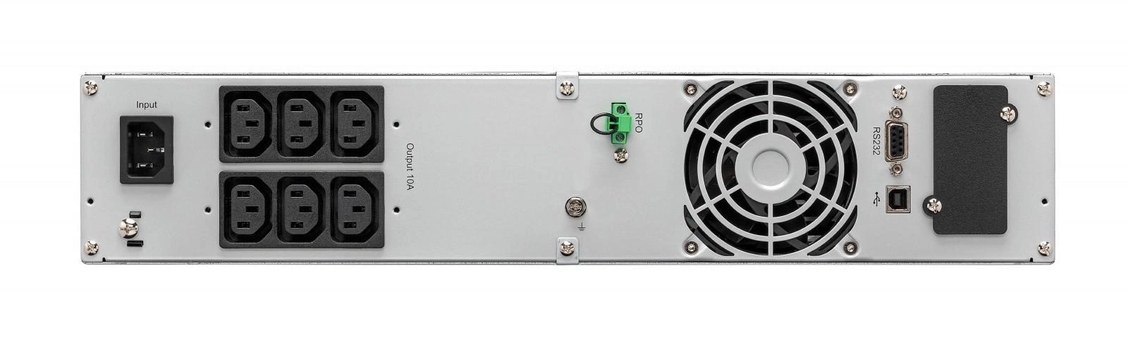 • Łatwa komunikacja z zasilaczem UPS przez port USB, port RS232 lub przez sieć za pośrednictwem opcjonalnej karty sieciowej (Network-M3). Wszystkie modele są również wyposażone w złącze RPO.