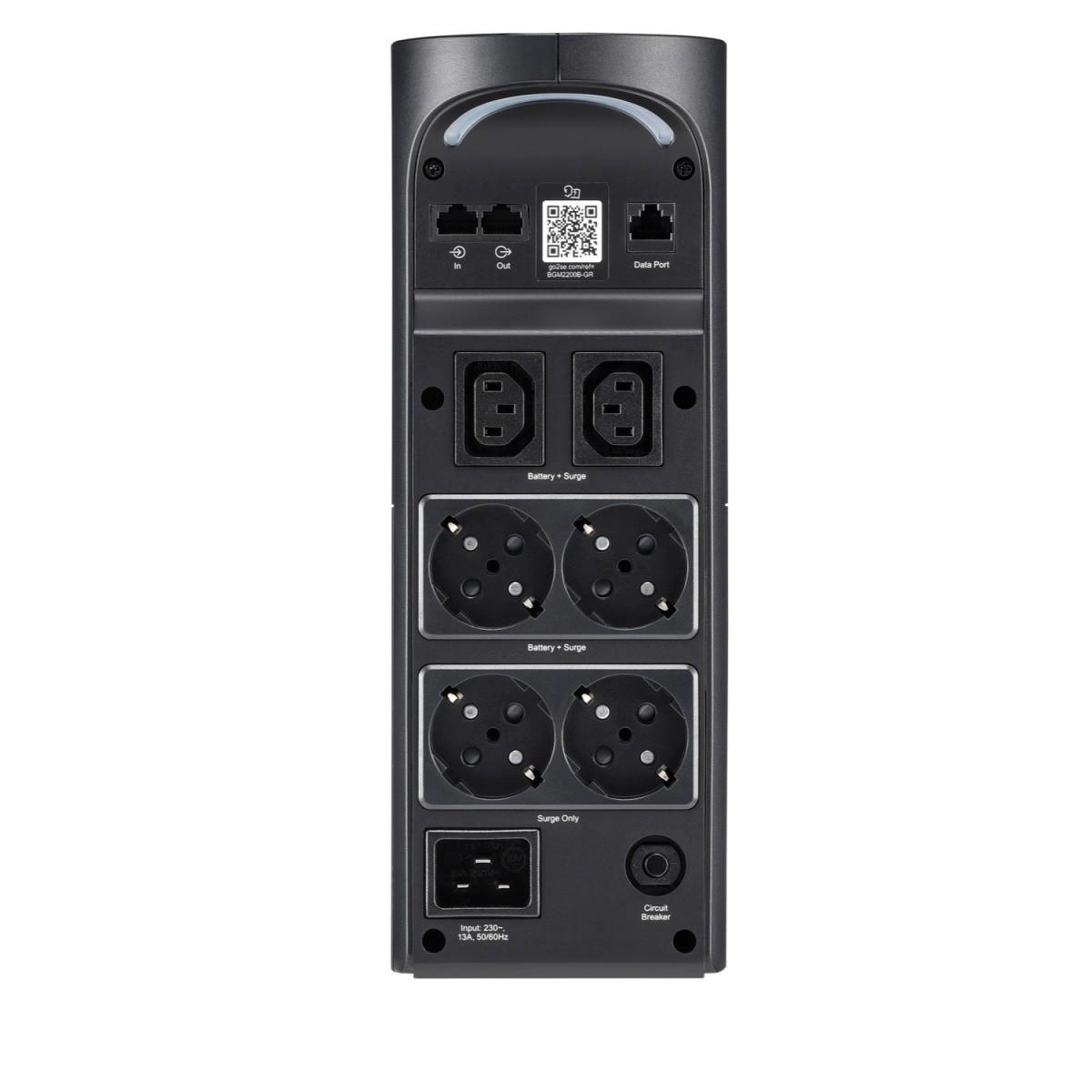 Ten zasilacz APC Back-UPS Pro zapewnia doskonałą ochronę zasilania dla wydajnych konsol do gier i komputerów PC, routerów/modemów i akcesoriów do gier. Zasilacz UPS typu tower o mocy 2200 VA/1320 W ma w sumie 6 gniazd, z których 3 służą do zasilania akumulatorowego i ochrony przeciwprzepięciowej, a 3 służą wyłącznie do ochrony przed przepięciami. Charakteryzuje się wytrzymałością udarową wynoszącą 1080 dżuli. Posiada funkcję automatycznej regulacji napięcia, która koryguje spadki i przepięcia napięcia do odpowiedniego poziomu. Jest wyposażony w PowerChute Serial Shutdown, łatwe w obsłudze oprogramowanie do bezpiecznego zamykania systemu z funkcjami zasilania i zarządzania energią. Ten UPS jest objęty 3-letnią gwarancją i polisą ochrony podłączonego sprzętu o wartości 150 000 USD. Posiada porty USB (typ A + C) umożliwiające inteligentne ładowanie urządzeń osobistych.