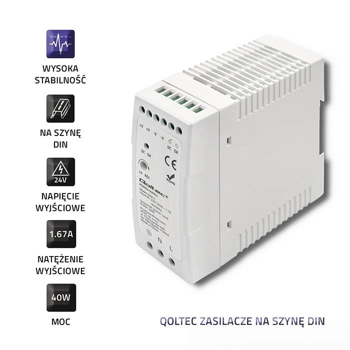 Zasilacze na szynę DIN marki Qoltec są przydatnym elementem systemów automatyki, sterowania maszynami, technice oświetleniowej oraz elektronice przemysłowej w których istotny jest rozmiar urządzeń zasilających oraz dostosowanie ich do ograniczonej przestrzeni.