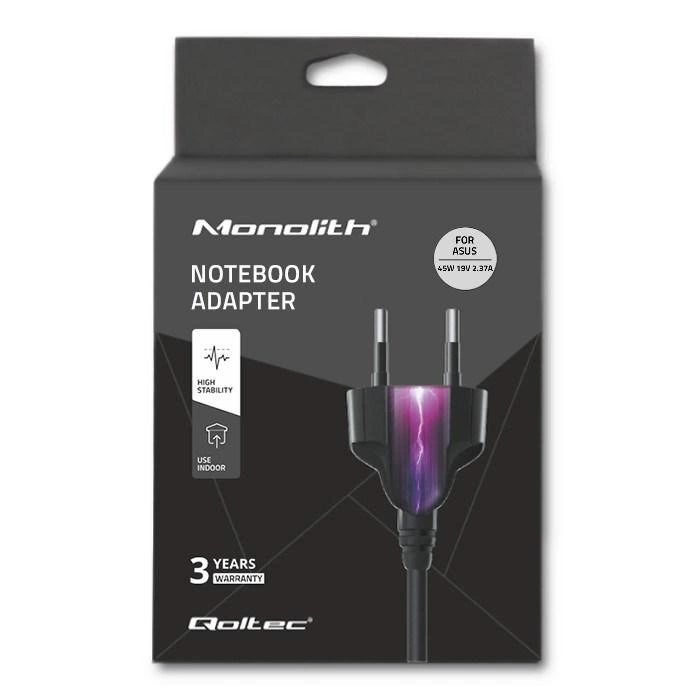 Zasilacz Qoltec 51506.45W do notebooka Asus (19 V; 2,37 A; 45W; 4 mm x 1.35 mm)