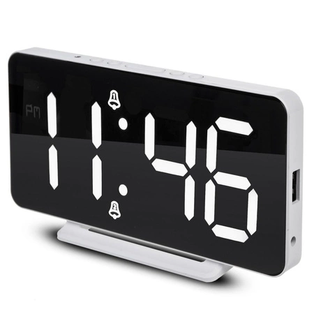Nowoczesny zegar wyposażony w duży, czytelny ekran, który idealnie wkomponuje się w każde wnętrze, niezależnie czy urządzone jest w stylu klasycznym lub nowoczesnym. Duże cyfry zapewniają czytelność nawet z większej odległości, a wbudowany czujnik pozwala na wyświetlanie temperatury otoczenia. Aby uniknąć zaspania, podwójny budzik został wyposażony w funkcję drzemki. Gdy włączy się sygnał budzenia, a Ty potrzebujesz jeszcze chwili, wystarczy nacisnąć przycisk ZZzz. Czas trwania drzemki można ustawić osobno dla każdego budzika (od 5 do 60 minut). Regulacja jasności pozwala dostosować jasność ekranu do indywidualnych warunków w pomieszczeniu. Możesz ustawić ręcznie jeden z trzech dostępnych poziomów, lub skorzystać z automatycznej regulacji.