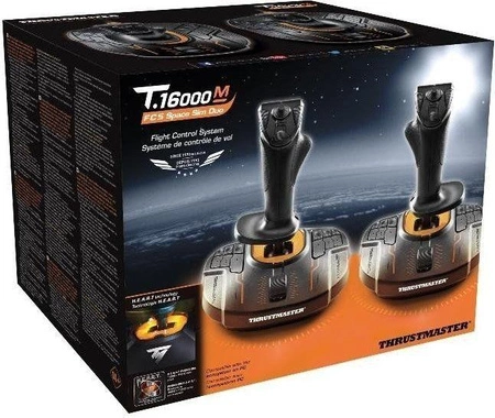 - Zestaw dwóch joysticków T.16000M FCS po jednym w układzie lewo- i praworęcznym umożliwiający granie w symulatory kosmiczne obiema rękami.