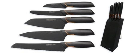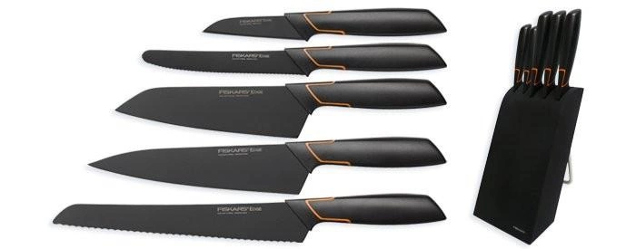 Linia noży Edge to połączenie eleganckiego i nowoczesnego wzornictwa z innowacyjną funkcjonalnością. Ergonomiczna rękojeść zapewniająca pewny chwyt. Ich ostrza wykonane są z wysokiej jakości stali, dodatkowo szlifowane w celu przedłużenia ich trwałości. Ostrze pokryte specjalną nieprzywieralną powłoką zapobiegającą przywieraniu jedzenia.